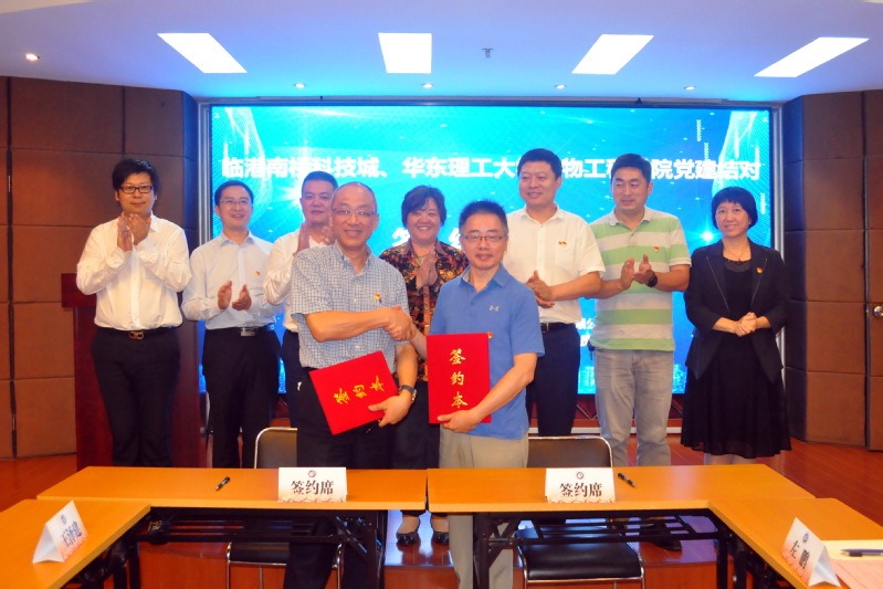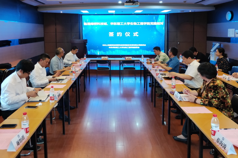 陆兵副书记与姚炜副书记分别代表双方在《中共上海漕河泾奉贤科技绿洲建设发展有限公司委员会与中共必赢bwin线路检测中心官网委员会结对共建协议书》上签字。签约仪式结束后,临港南桥科技城一行人员参观了生物反应器工程国家重点实验室。