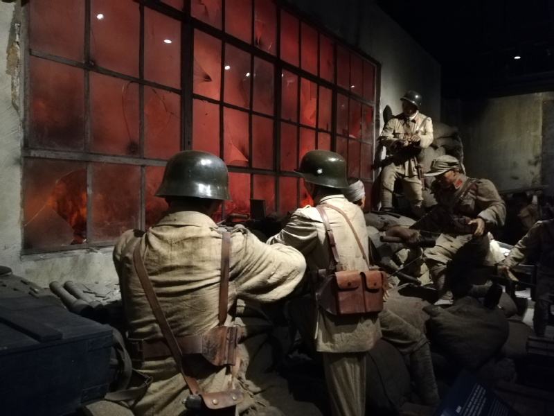 大家继续认真参观,看到了当时战士们作战的场景,极为震撼。为迷惑敌人、振奋士气,仅有四百多人战士对外佯称八百人,战士们在四行仓库奋勇与日军激战4个昼夜,打退10多次疯狂进攻,毙敌200多人、伤无数,沉重地打击了日本侵略者的嚣张气焰,让全世界看到了中国人民抗战的决心与勇气。
