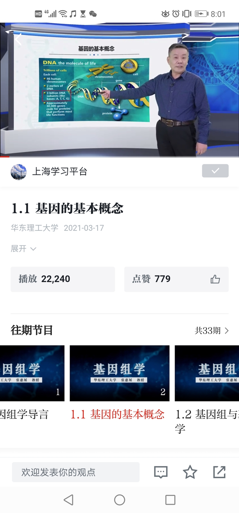 近日,必赢官网必赢bwin线路检测中心官网张惠展教授的上海市精品课程《基因组学》在中共中央宣传部“学习强国”平台正式上线,上线短短数日,播放数万次,点赞上千。