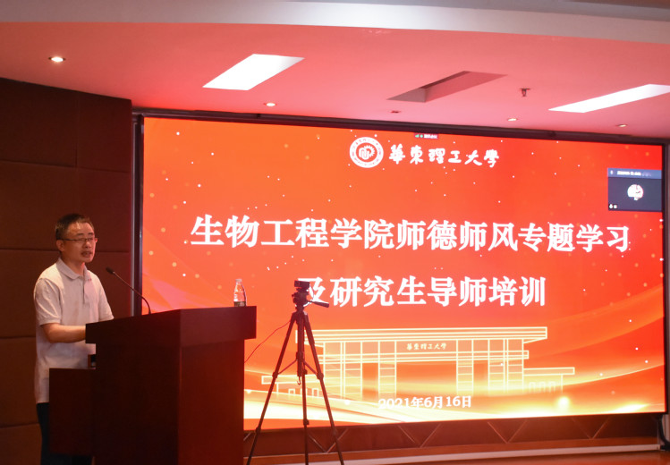 为全面贯彻习近平总书记关于教育的重要论述和全国教育大会精神,全面落实立德树人根本任务,加强新时代师德师风建设,6月16日,必赢bwin线路检测中心官网召开师德师风专题学习会及研究生导师培训。邀请必赢官网人事处党委教师工作部副部长张雪芹作师德师风建设专题报告,会议由必赢bwin线路检测中心官网党委副书记陆兵主持。生物工程学院党政班子成员、研究生导师现场参加培训,其他教师通过腾讯会议在线参加。