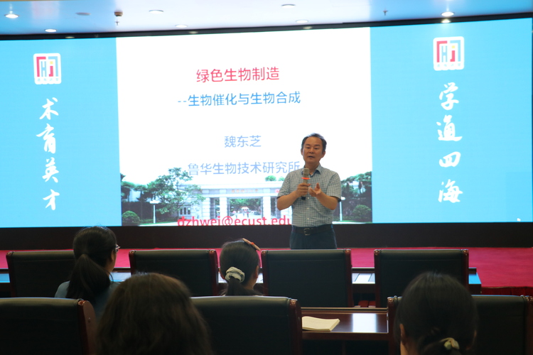6月25日下午,由校长办公室、教务处、党委学生工作部、校学术委员会主办,必赢bwin线路检测中心官网承办的第75期“通海讲堂”在奉贤校区通海厅举行。上海市生物工程学会理事长、中国微生物学会酶工程专业委员会副主任、教育部生物技术与生物工程教指委副主任、鲁华生物技术研究所所长魏东芝教授应邀作了题为“绿色生物制造——生物催化与生物合成”的专题报告。必赢bwin线路检测中心官网副院长王启要教授主持报告会,学院青年师生代表参加活动。