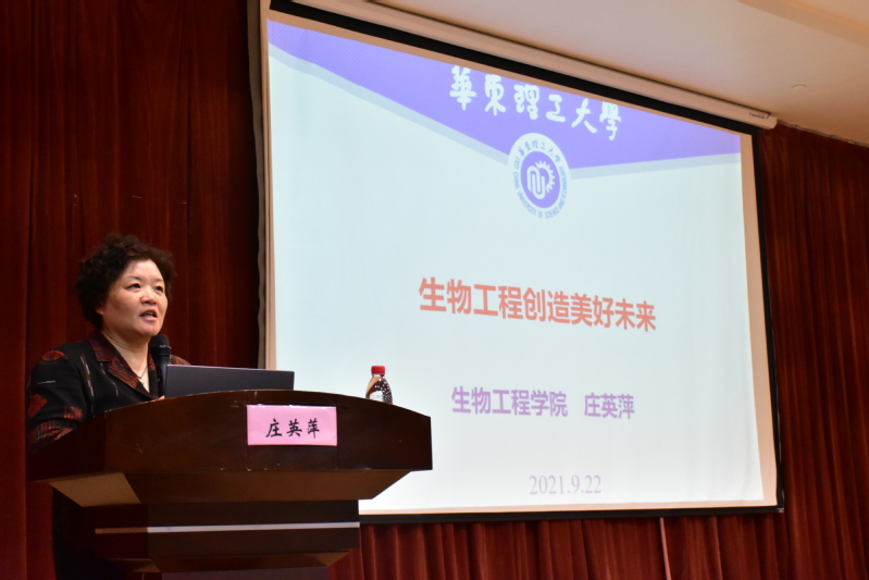 9月22日晚,生工讲坛第126期在奉贤校区敬贤堂开讲。必赢bwin线路检测中心官网庄英萍院长受邀为2021级新生作题为“生物工程创造美好未来”的专题报告。