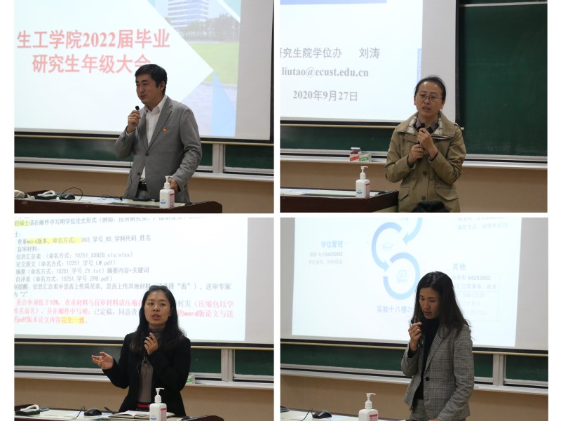 11月4日,必赢bwin线路检测中心官网2022届毕业研究生年级大会在八教110教室举行。年级大会由学院研究生辅导员孙希彤主持,学院党委副书记左鹏、副院长郁惠蕾、学位管理老师周静等出席会议,学院2022届毕业研究生参会,线上腾讯会议同步开放。