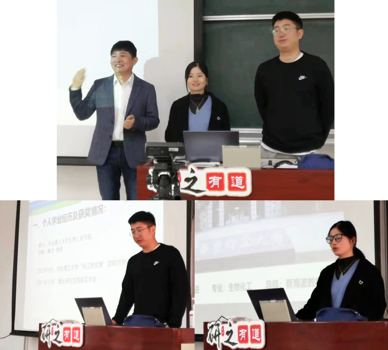 在分享会上,国奖获得者王进同学从查阅、总结整理文献等方面同大家分享文献阅读心得与文献管理工具软件的使用,并在课题前沿进展上给出了自己的想法;纪小国同学从个人实践出发为大家介绍科研中好灵感产生的来源;张斌同学向大家讲述他在学习和科研中时间平衡和心态调整方法,并推荐了常用的数据网站等实用资源。嘉宾们分享的方法与经验深刻诠释了“研之有道”活动的含义。