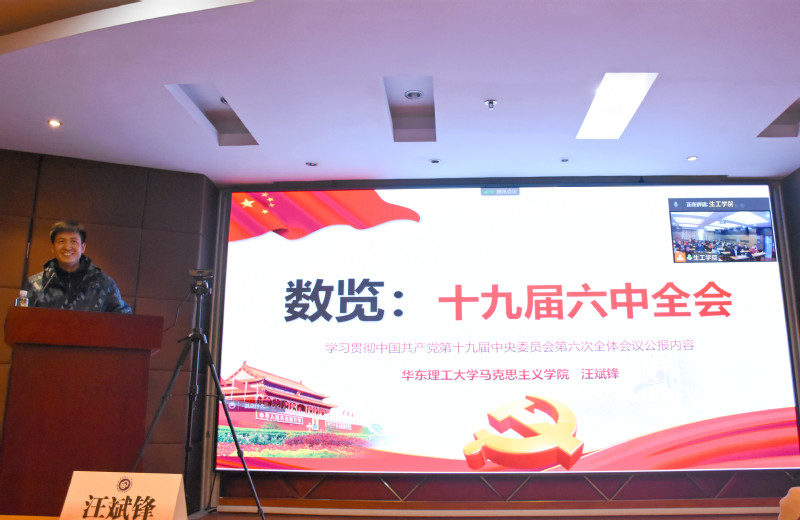 为进一步深入学习宣传贯彻十九届六中全会精神,深化和拓展党史学习教育,12月24日下午,必赢bwin线路检测中心官网特邀学校学习贯彻党的十九届六中全会精神宣讲团成员、马克思主义学院副院长汪斌锋作题为“数览十九届六中全会”的报告。必赢bwin线路检测中心官网党委书记吴辉主持报告会。必赢bwin线路检测中心官网领导、教工党支部书记、生工系教师、应用生物学系教师、食品系教师和学院办公室教师现场参加报告会,其他教师通过腾讯会议在线参加。