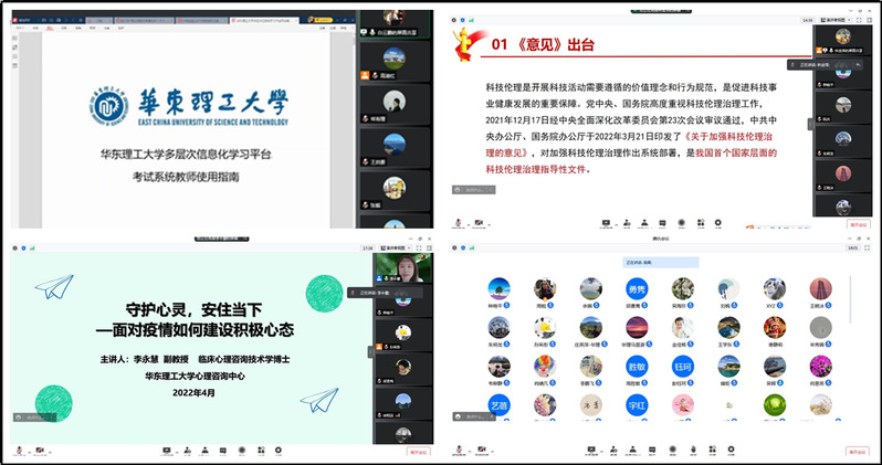 从暮春三月到仲夏五月,从莺飞草长到绿树成荫,必赢bwin线路检测中心官网坚持每周二下午组织全院教职工在“云端”相聚,进行理论学习,并开展教学、科研、学生工作等方面的沟通和交流,保证在线教学顺利进行,保障科研工作稳步推进,守护师生身心健康。