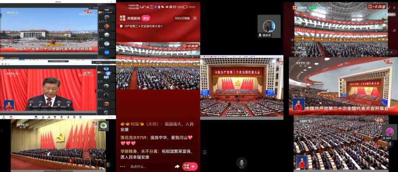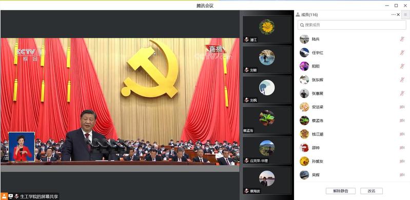 2022年10月16日上午,中国共产党第二十次全国代表大会开幕会举行,习近平同志代表第十九届中央委员会向大会作报告。在做好疫情防控的情况下,生工学院广大师生通过网络、电视等多渠道收看开幕会盛况,同时组织全体教工在腾讯会议室统一观看党的二十大开幕会,认真学习讨论党的二十大报告。